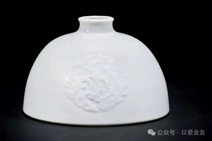 太⽩尊为康熙朝新创的⽂房名品,因造型酷似李⽩饮酒之尊⽽得名,传世品⻅有豇⾖红釉、⽩釉品种。本品侈口⼩巧,外翻如唇,短颈溜肩,⿎腹呈半球形,腹部模印三团螭⻰暗纹,⻰纹清晰。底部浅圈⾜修整圆润,胎质润⽩坚致,以⻘花书“⼤清康熙年制”六字三⾏楷书款,其款字笔笔有神,顿挫皆⻅章法。线条细腻流畅,⼩巧可爱,秀美怡⼈,素雅润洁,观之令⼈犹觉淡恬⽂静,赏⼼悦目,不忍释⼿。整器神韵独到,皆为后世摹仿所不及,细细把玩,令⼈寻味不已,是为⽂房清玩之隽品。
